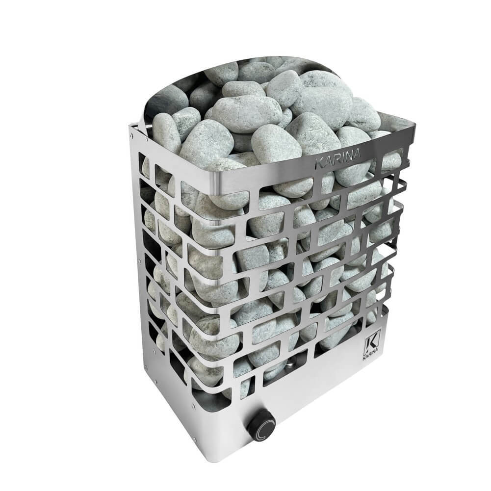 Компактная настенная электрокаменка Karina Air имеет современный и лаконичный дизайн. Подходит для маленьких саун объемом до 10м3. Вмещает в себя большое количество камней до 60кг.