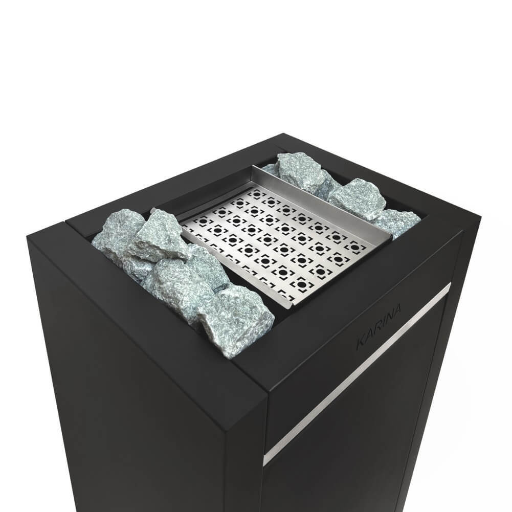 Электрокаменка с испарителем Karina Clio имеет современный дизайн. Подходит для парной объемом 16м3. Вмещает в себя много камней, до 40кг. Управление печью происходит с помощью выносного пульта который докупается отдельно!